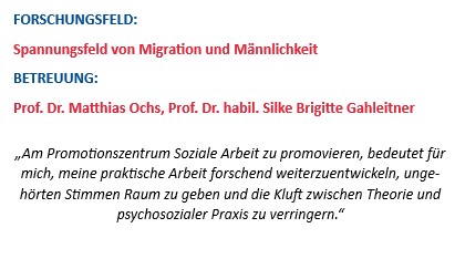 Im Fokus stehen historische, soziale und interpersonelle Traumaspuren sowie Bewältigungshandeln im Spannungsfeld von Migration und Männlichkeit.
