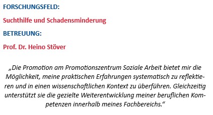 Aktuelle Berichte der Europäischen Beobachtungsstelle für Drogen und Drogensucht (EUDA) sowie des Büros der Vereinten Nationen für Suchtstoff- und Verbrechensbekämpfung (UNODC) dokumentieren, dass die Kokainproduktion ein historisches Maximum erreicht hat und die Substanz auf dem europäischen Drogenmarkt in hoher Verfügbarkeit und häufig hoher Reinheit vorliegt. Parallel dazu wird der Drogenkonsum und -handel in zahlreichen europäischen Städten zunehmend öffentlich sichtbar. Zugleich zeigen sich Veränderungen im Konsumverhalten marginalisierter Personen mit Abhängigkeitserkrankungen: Insbesondere ist eine Verschiebung vom Konsum von Opioiden hin zu rauchbarem Kokain (Crack) zu beobachten.Die spezifischen psychoaktiven Wirkungen dieser Form des Kokains beeinflussen das Sozialverhalten der Nutzerinnen und Nutzer von Drogenkonsumräumen (DKR). Es kommt vermehrt zu aggressivem Verhalten, gesteigerter Hektik und Anzeichen von Verwahrlosung, was erhebliche Herausforderungen für die Suchthilfe darstellt. Wenn etablierte Angebote ihre Zielgruppen nicht erreichen, verlagert sich der Konsum in öffentliche oder private Räume, mit der Folge erhöhter biopsychosozialer Risiken für Konsumierende sowie einer Verringerung des subjektiven Sicherheitsempfindens und der Lebensqualität in städtischen Räumen. Das vorliegende Dissertationsprojekt zielt darauf ab, die Bedürfnisse und Ressourcen der Nutzerinnen und Nutzer von DKR am Beispiel der Stadt Zürich qualitativ zu erfassen. Im Fokus stehen Konsummotive, Konsumverhalten, Kontextbedingungen, Strategien der Konsumsteuerung sowie die daraus resultierenden biopsychosozialen Effekte. Die Datenerhebung erfolgt mittels problemzentrierter Interviews, deren Auswertung nach den Prinzipien der Grounded Theory (Strauss & Corbin, 1996) erfolgt. Ergänzend werden quantitative Kontextdaten, wie Konsumfrequenz, konsumierte Substanzen und soziodemographische Merkmale der Gesamtpopulation, in die Analyse einbezogen, um eine differenzierte Darstellung der Zusammenhänge zu ermöglichen.